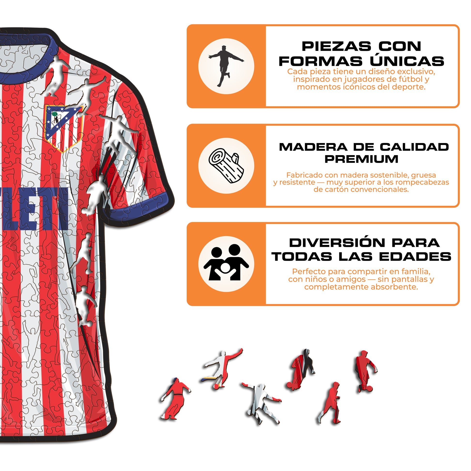 ✓ 1x Rompecabezas de Madera Oficiales: Atlético de Madrid® Jersey
