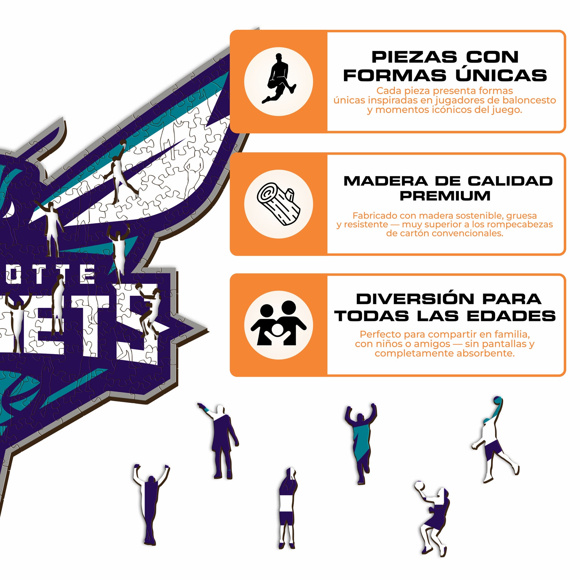 ✓ 1x Charlotte Hornets™ Escudo - Rompecabezas Oficial de Madera