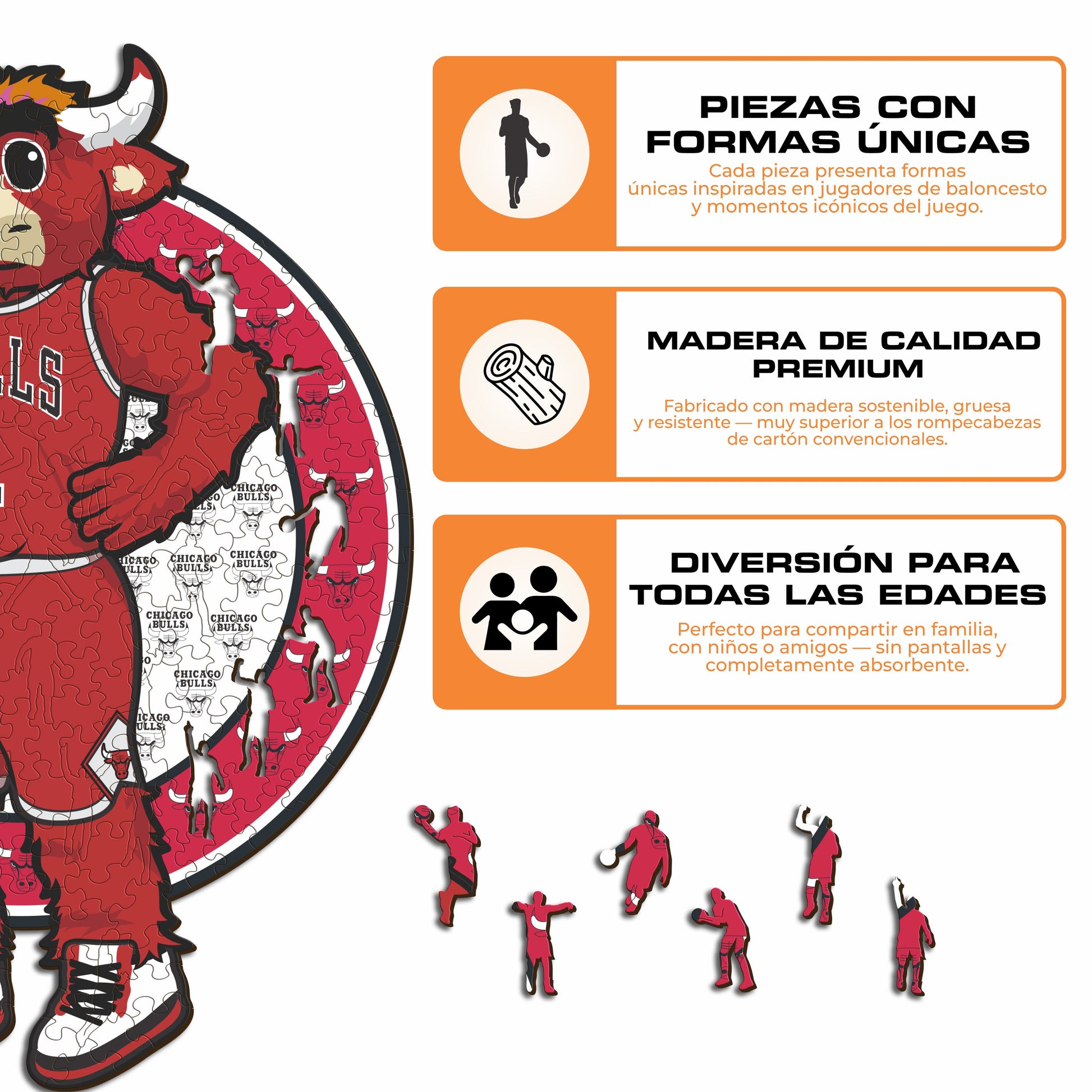 ✓ 1x Chicago Bulls™ Mascota - Rompecabezas Oficial de Madera