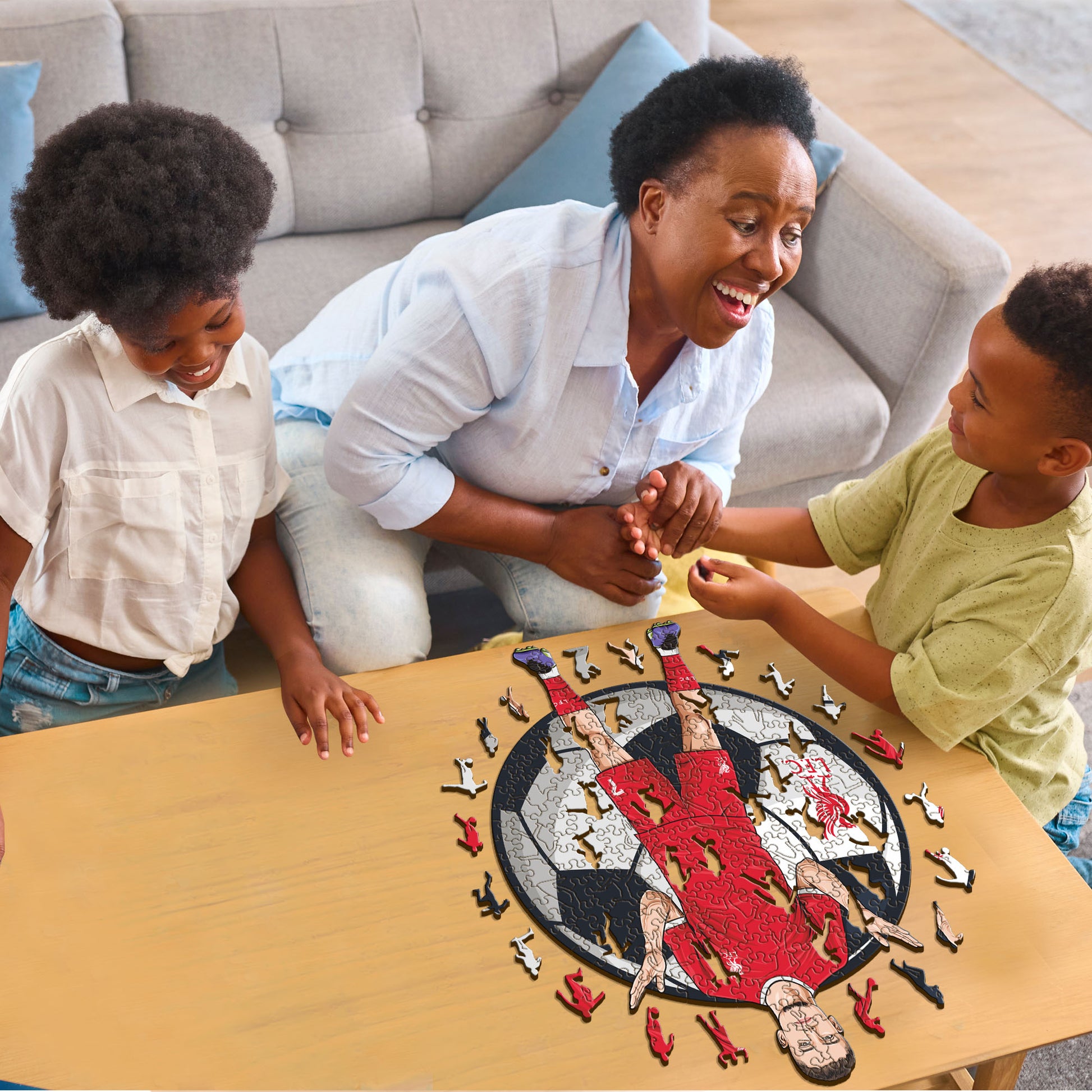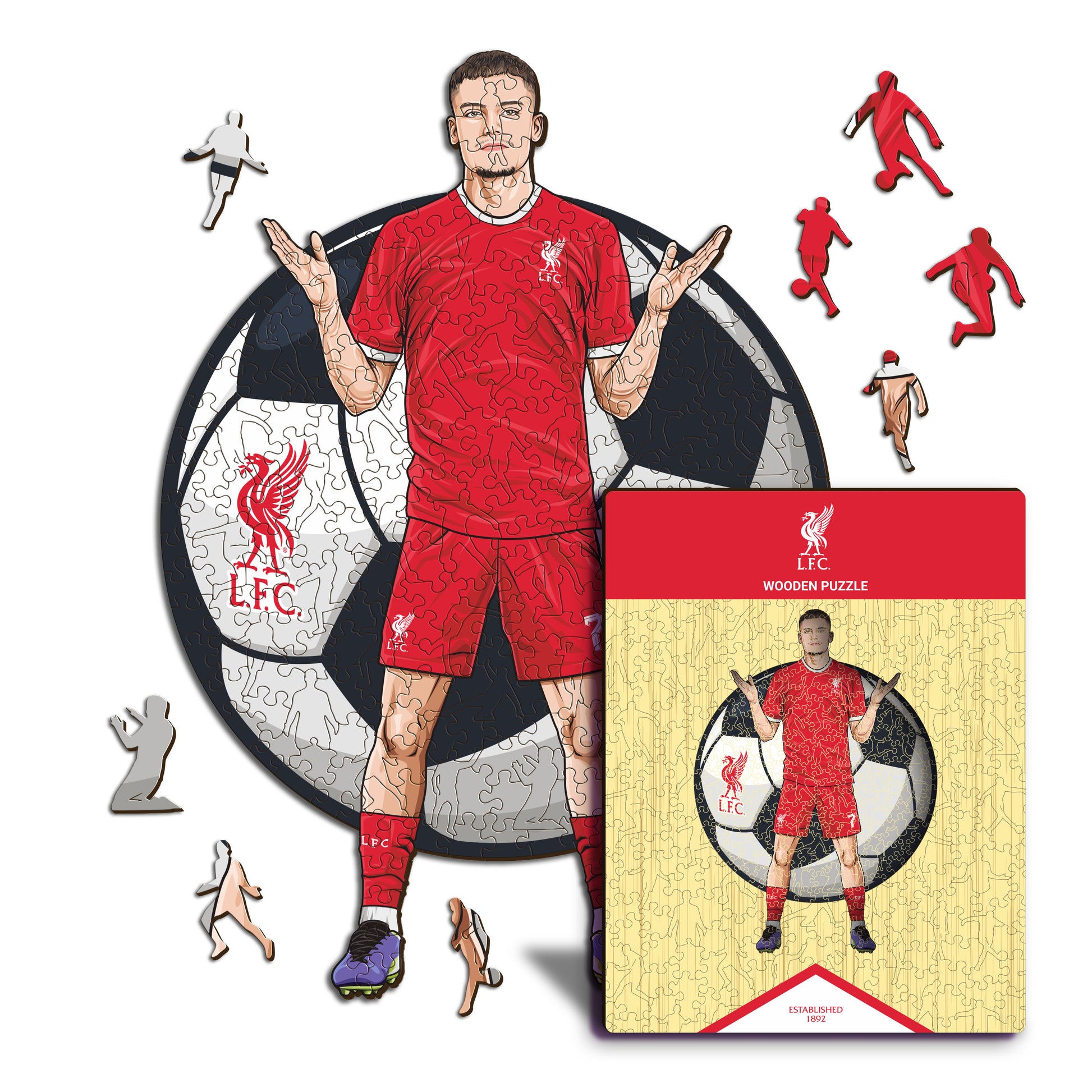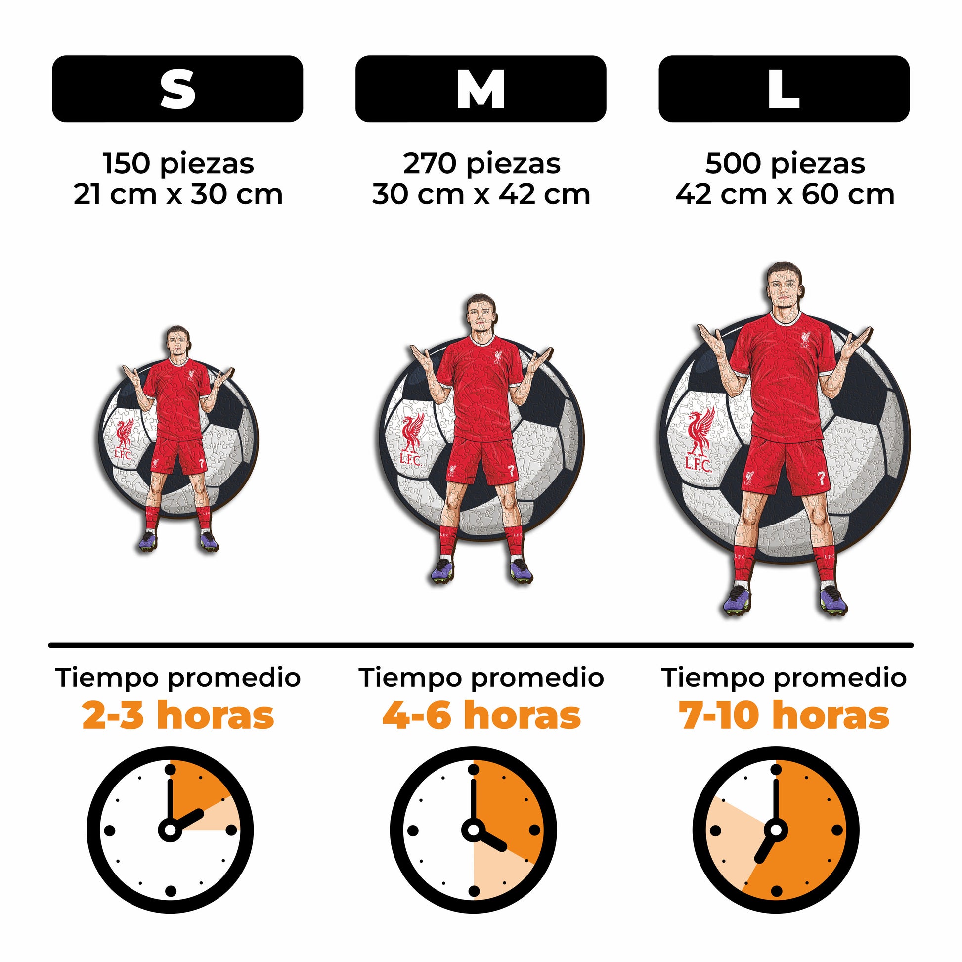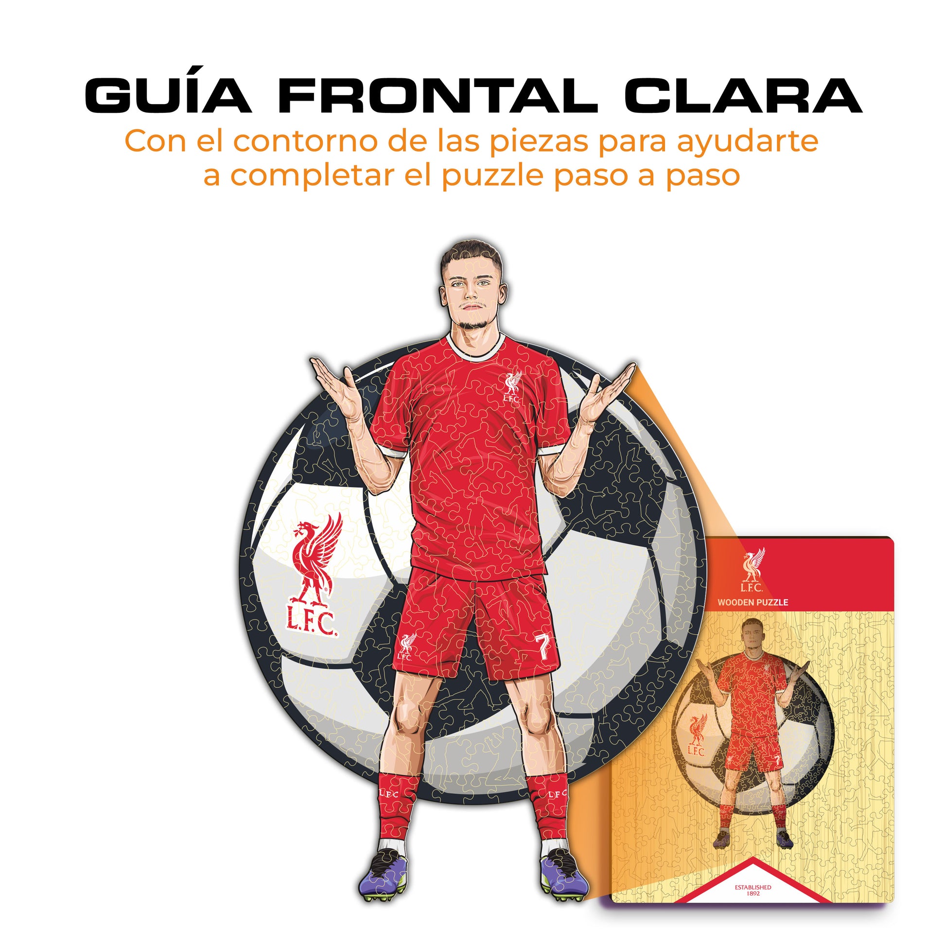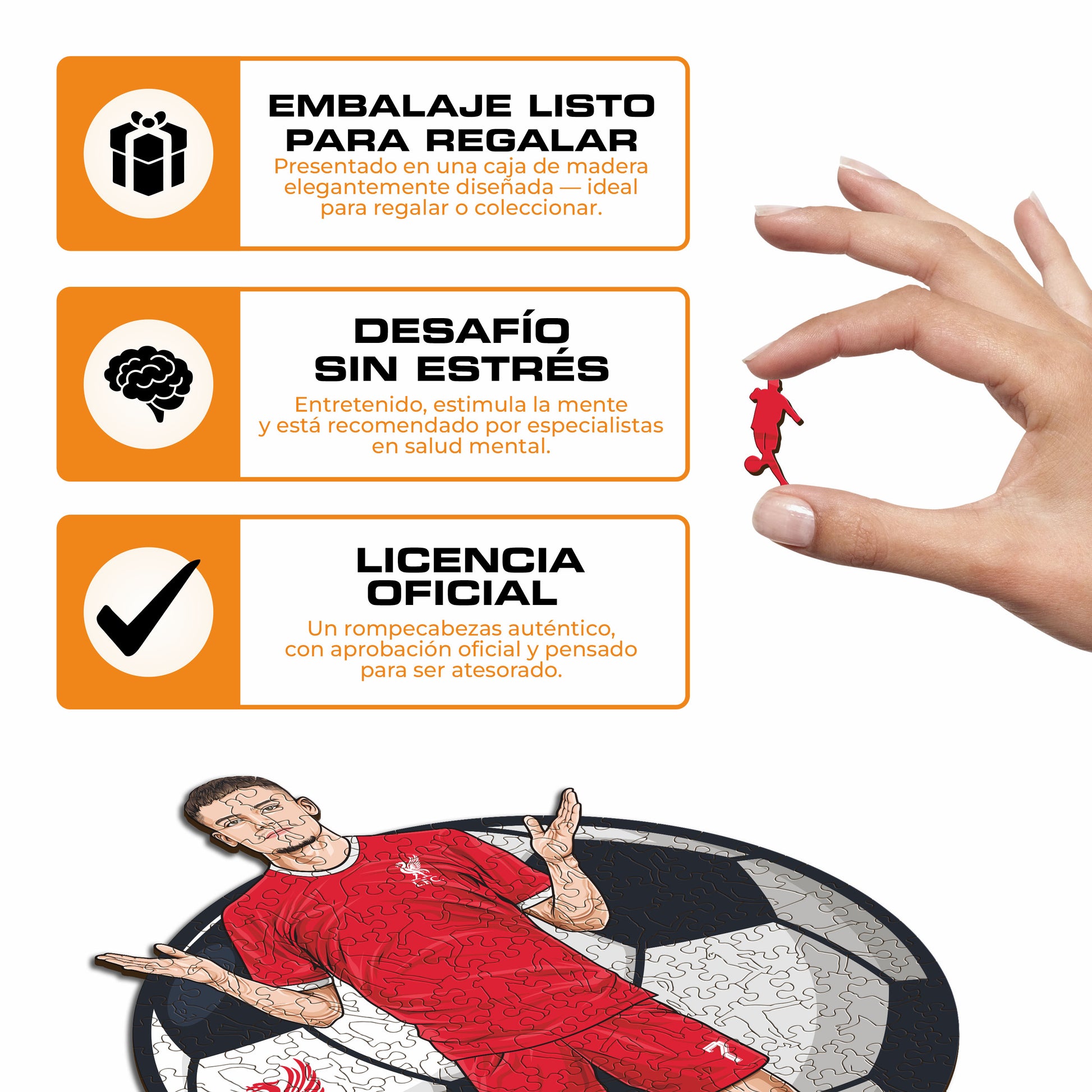 ✓ Cada pieza del rompecabezas tiene una forma única que representa elementos relacionados con el fútbol y poses de jugadores icónicos.