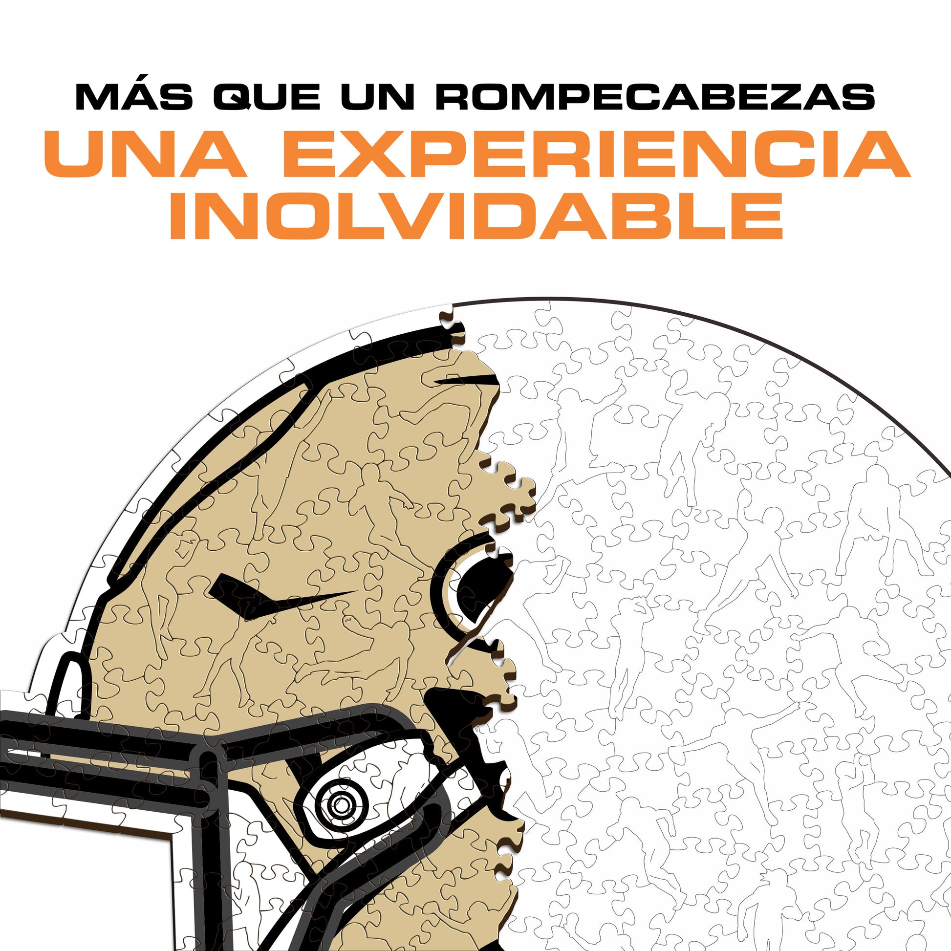 Cada pieza del rompecabezas tiene una forma única que representa elementos relacionados con el fútbol americano y poses de jugadores icónicos.