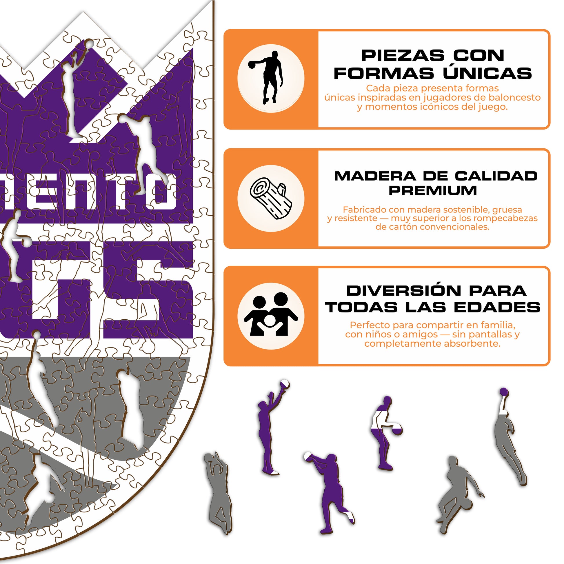 1x Sacramento Kings™ Escudo - Rompecabezas Oficial de Madera