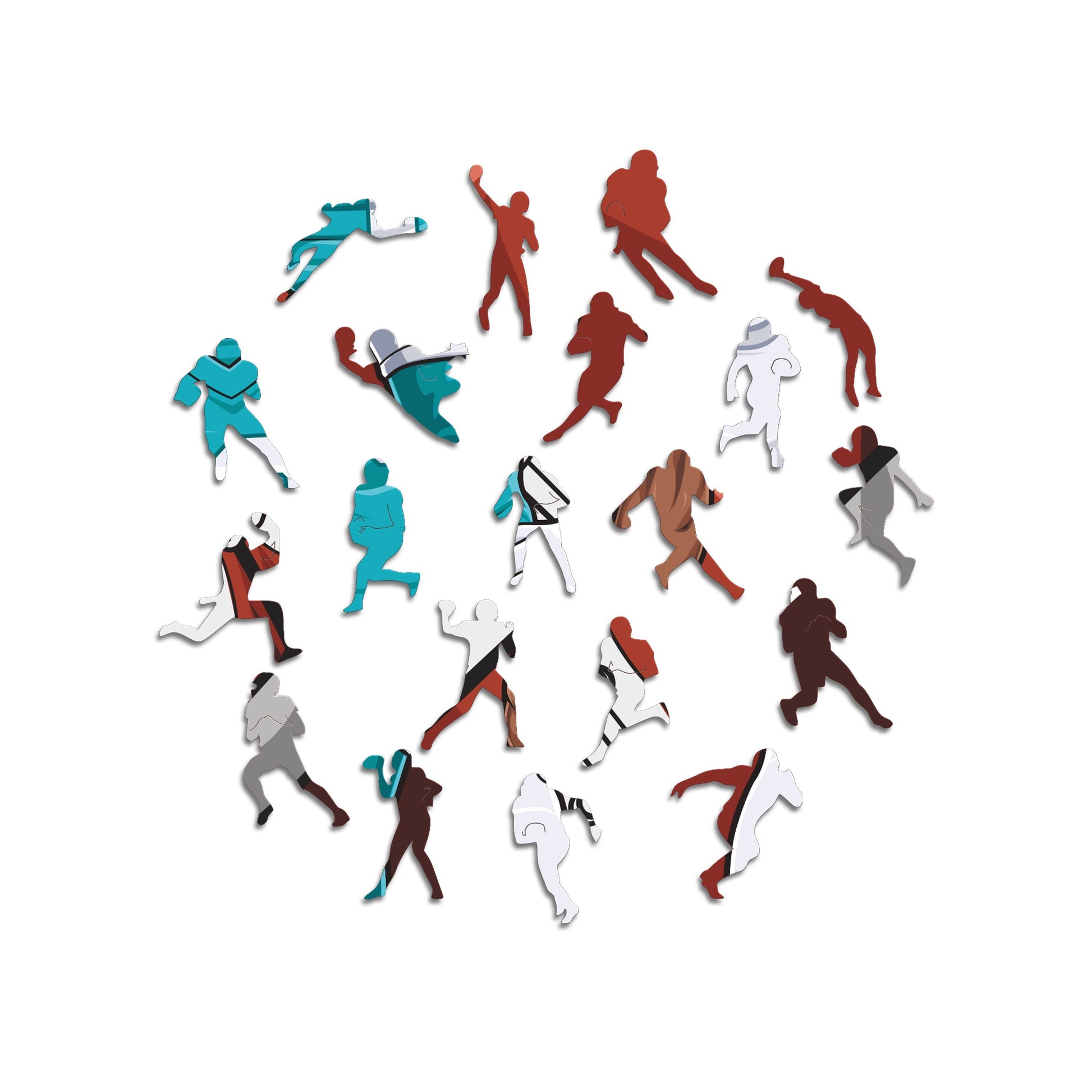 ✓ Cada pieza del rompecabezas tiene una forma única que representa elementos relacionados con el fútbol americano y poses de jugadores icónicos.